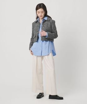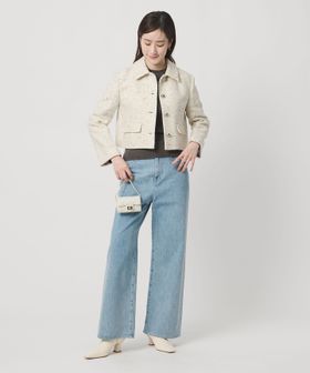 同素材展開の組下スカートとセットアップでの着用はもちろん、デニムを合わせてカジュアル感をプラスするのもおすすめです。