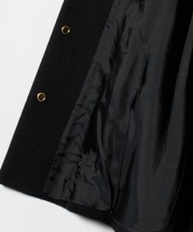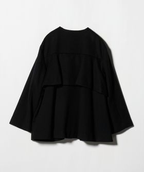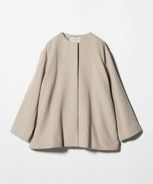 立体感と華やかさのあるバックフレアディティールがポイントのノーカラーコート。