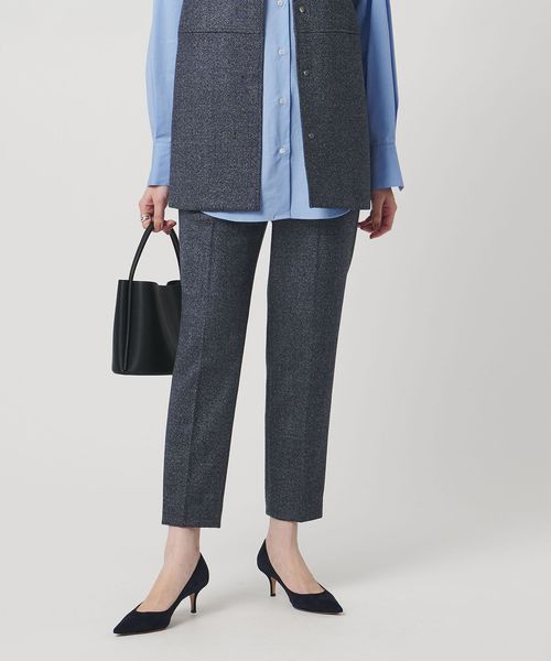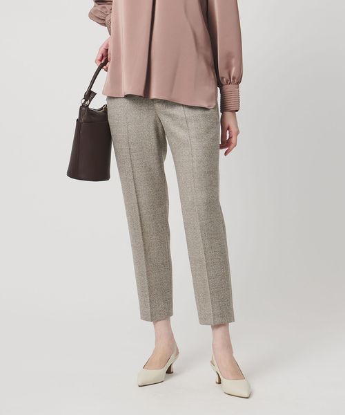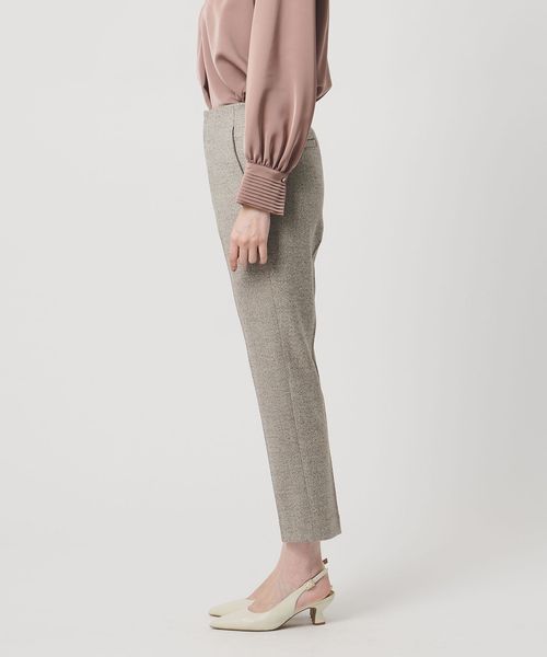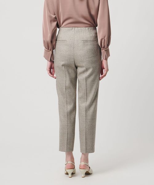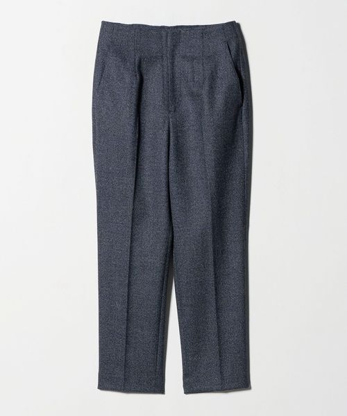 裾に向けて細身になるテーパードシルエットのパンツ。
