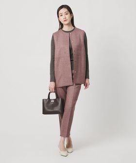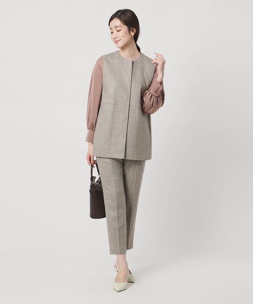 同素材のパンツとセットアップでのコーディネートも洗練された印象に。