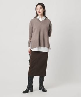 ヒップが隠れる着丈でゆったりとしたテントラインシルエットのVネックニット。