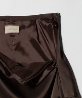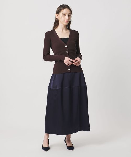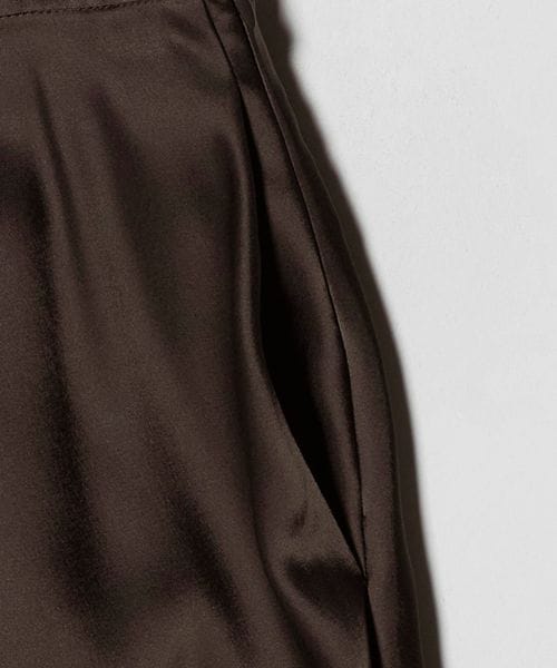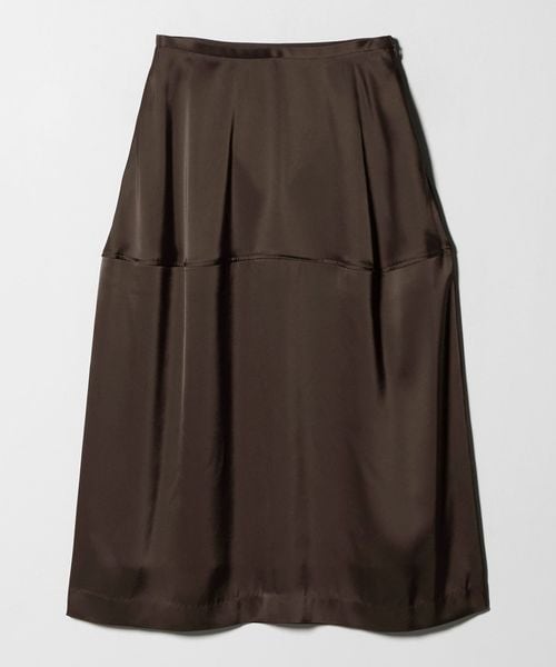 素材の落ち感を活かし、切替ラインからふんわり広がる縦のドレープが美しいデザインです。