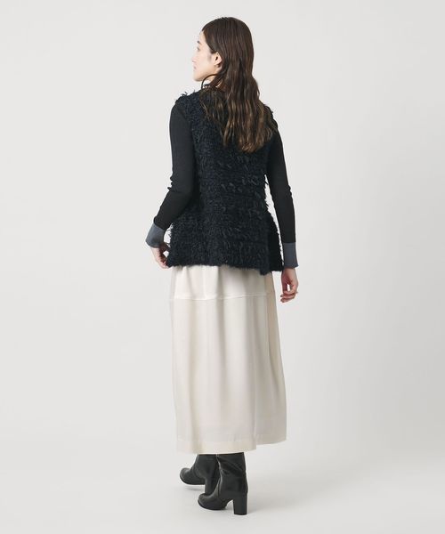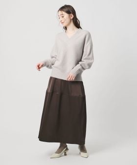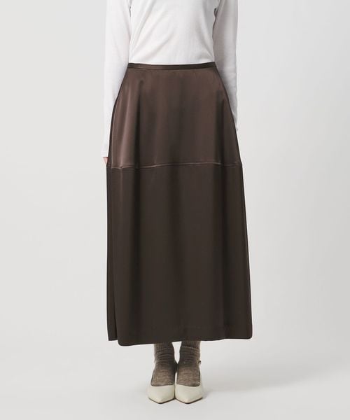 素材の落ち感を活かし、切替ラインからふんわり広がる縦のドレープが美しいデザインです。