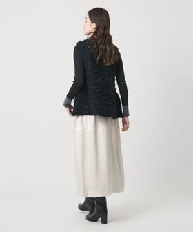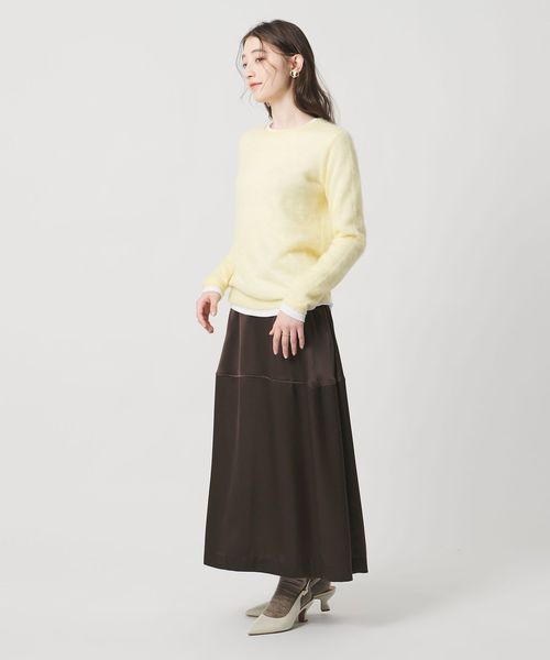 へアリーなニットと合わせると、ふんわりとした女性らしさが引き立ちます。