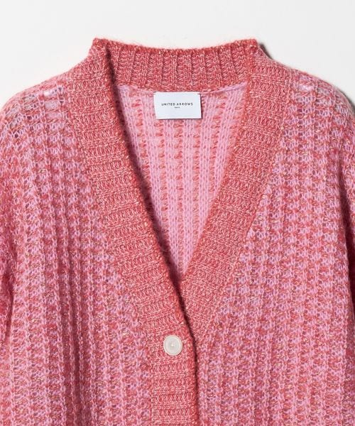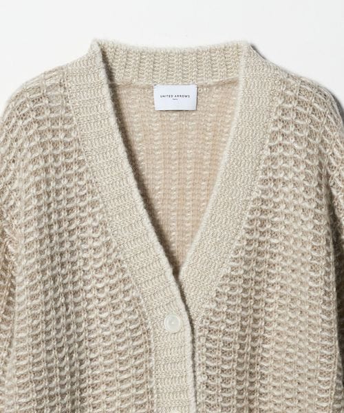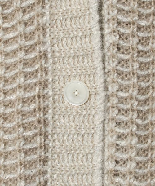 パーツごとで糸の種類や編みの表現を変えた、ニットならではの表情が華やかなカーディガン。