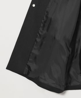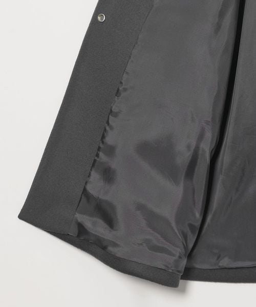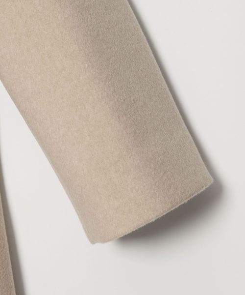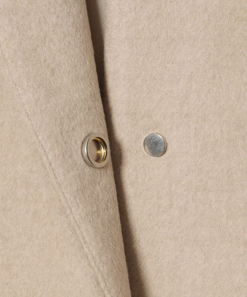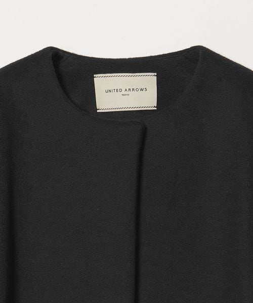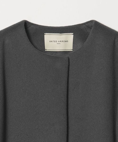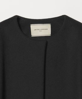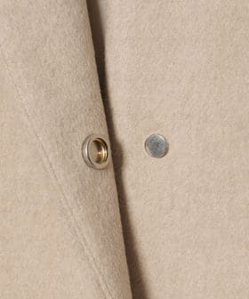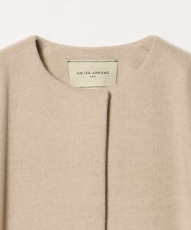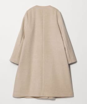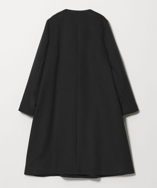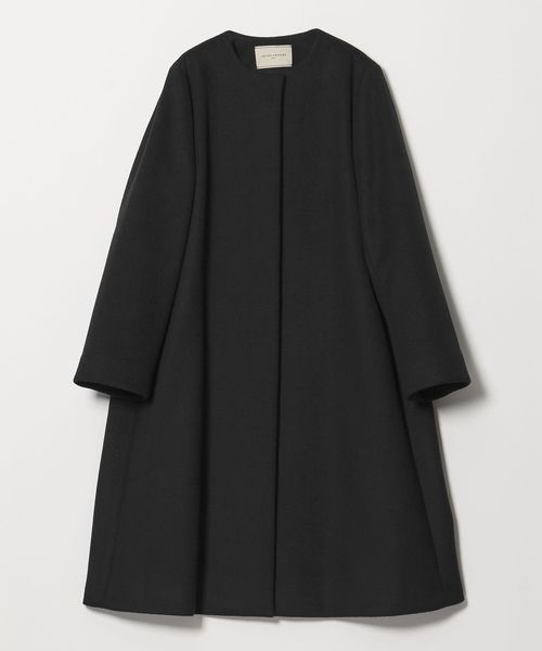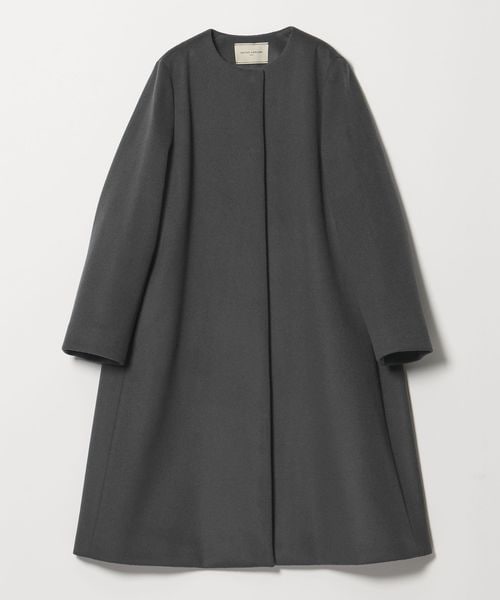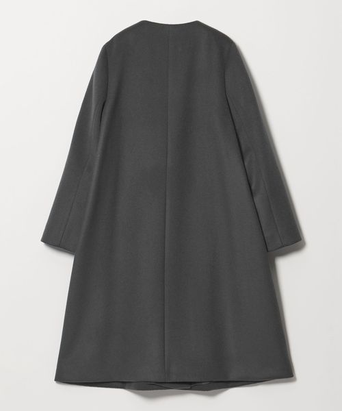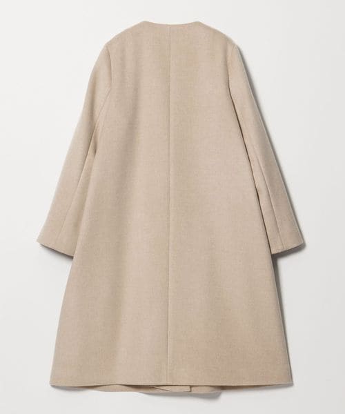 裾に向けてやや広がるAラインが女性らしいシルエットのミドル丈ノーカラーコート。