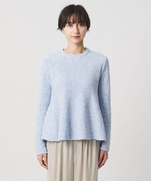 肩まわりと袖をすっきり仕上げたペプラムデザインニット。