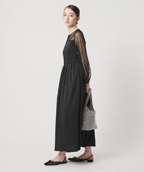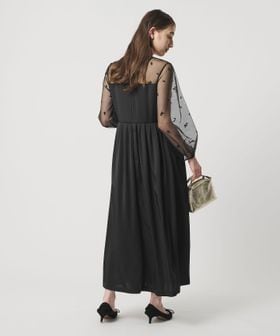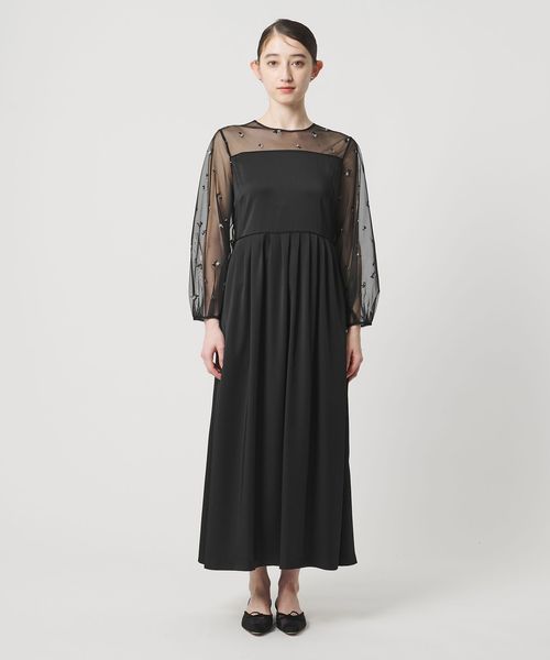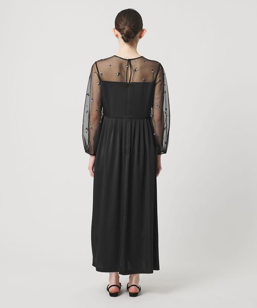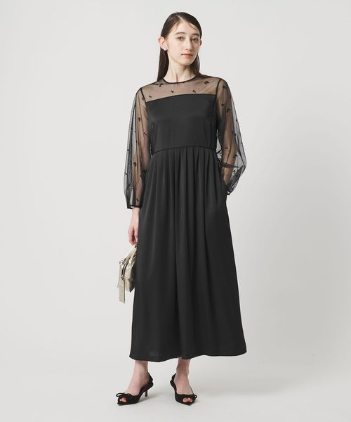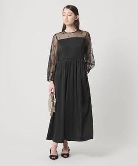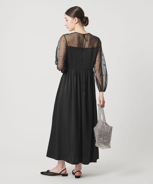 チュール素材に花柄の刺繍とスパンコールをあしらった、1枚で華やかに決まるオケージョンワンピース。
