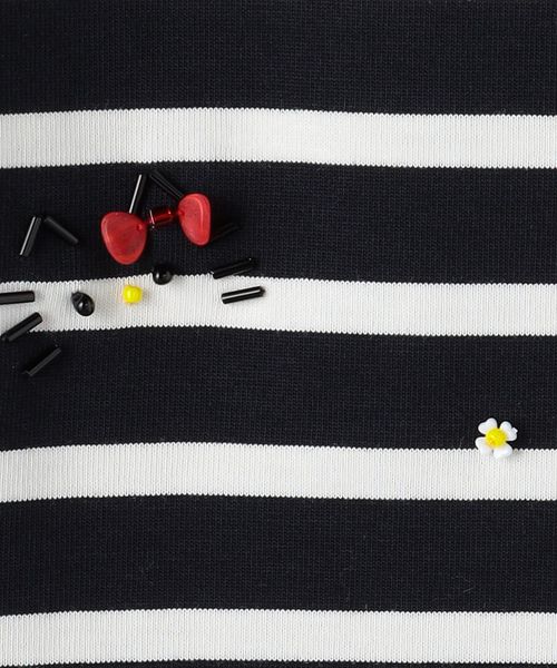 ボーダーカットソーにハローキティやチューリップ、リンゴといったビーズ刺繍を施しました。