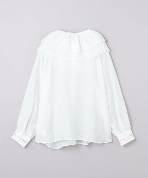 顔周りが華やぐビッグフリルカラーが印象的なシャツ