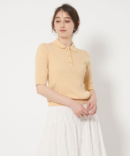 【一部別注】<SLOANE>リブ ボタン ハーフスリーブ ニット