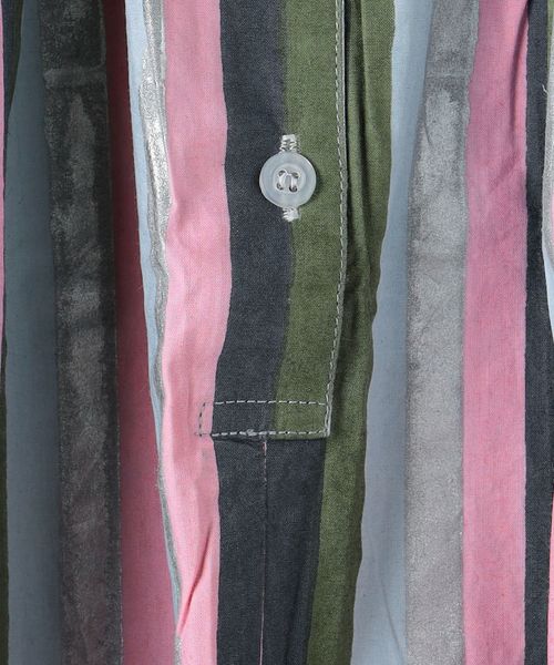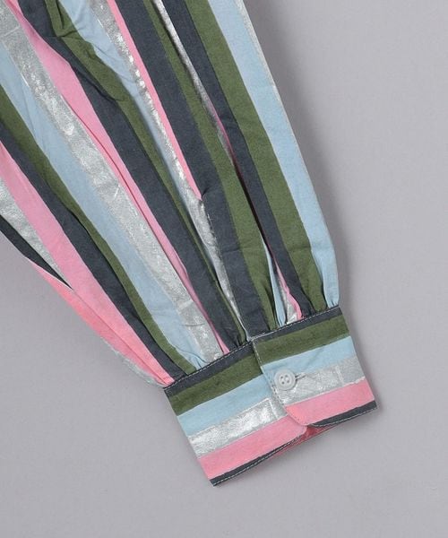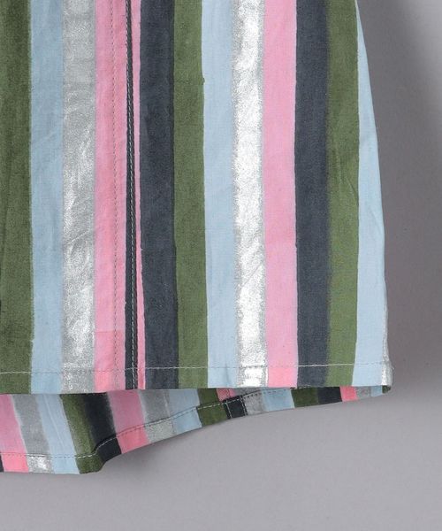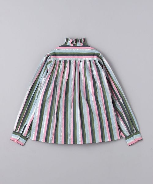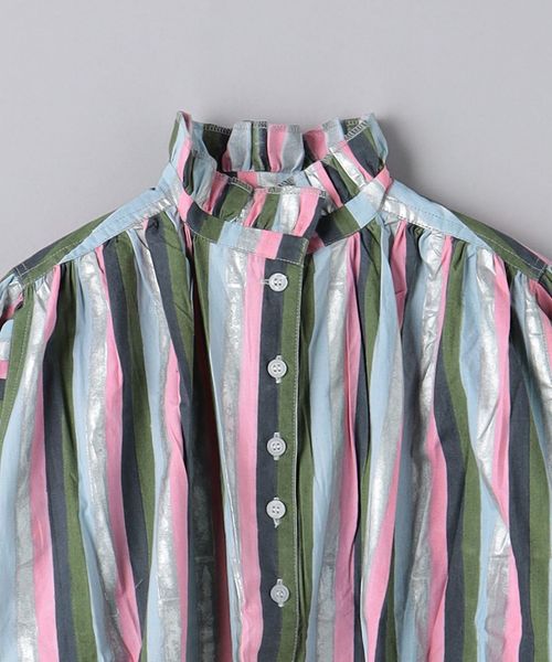 <SZ Blockprints>マルチストライプ フリルネック ブラウス