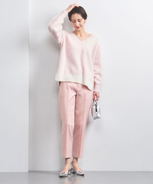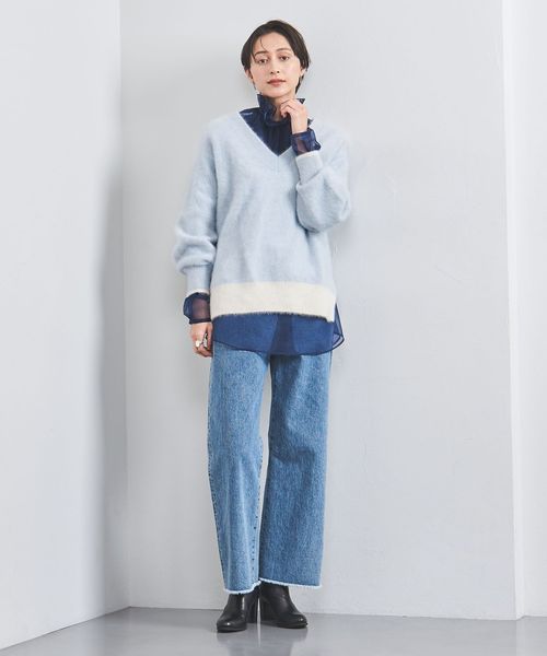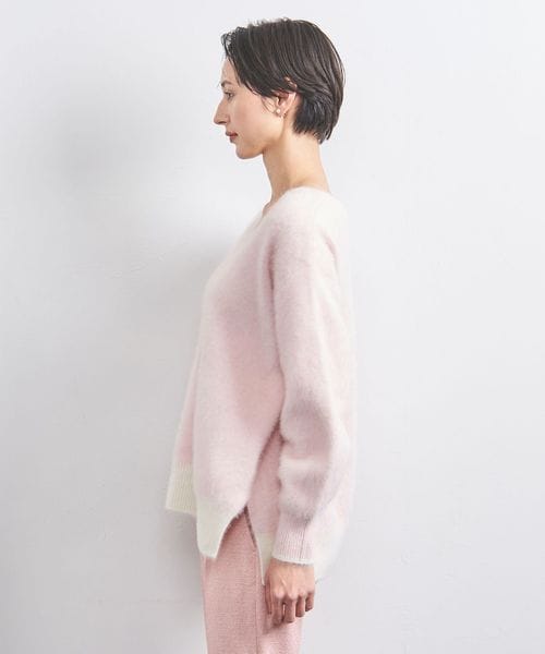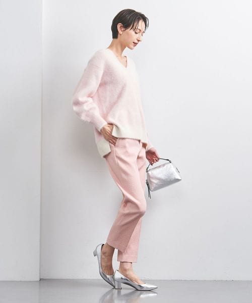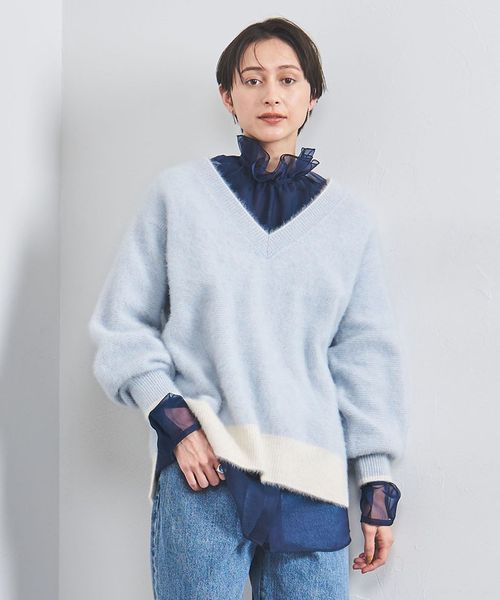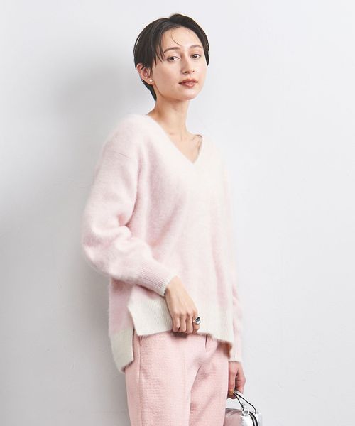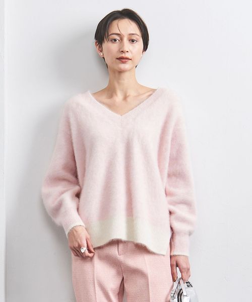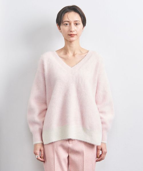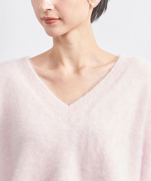 着回しがしやすいゆったりとしたボックスシルエットで、デコルテ周りを美しく見せてくれるVネックニット。