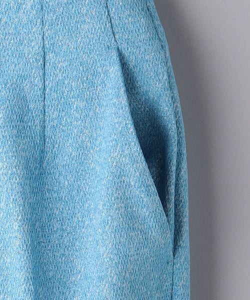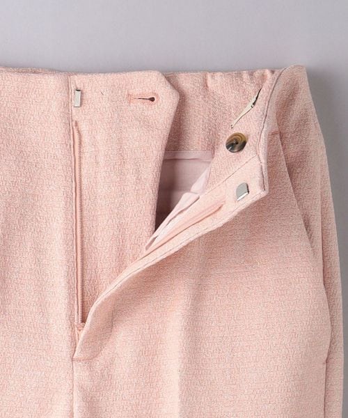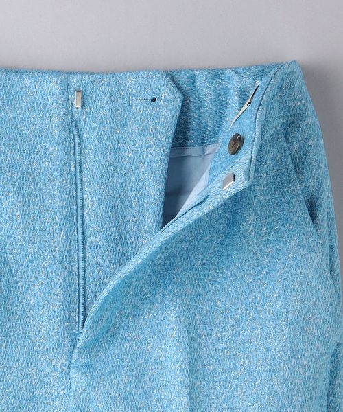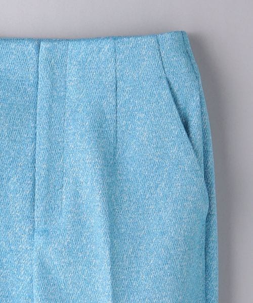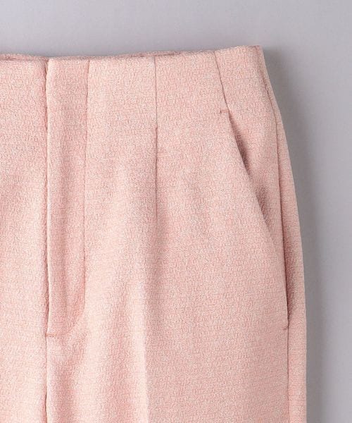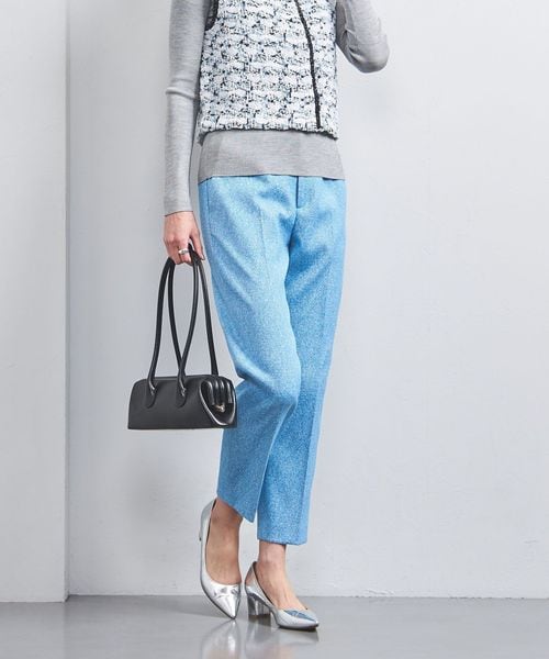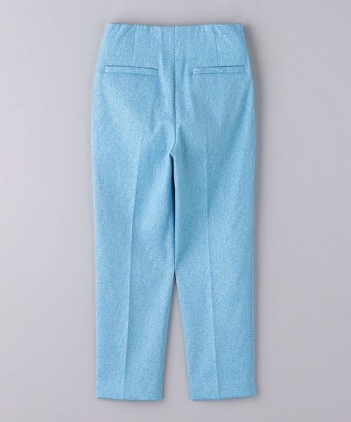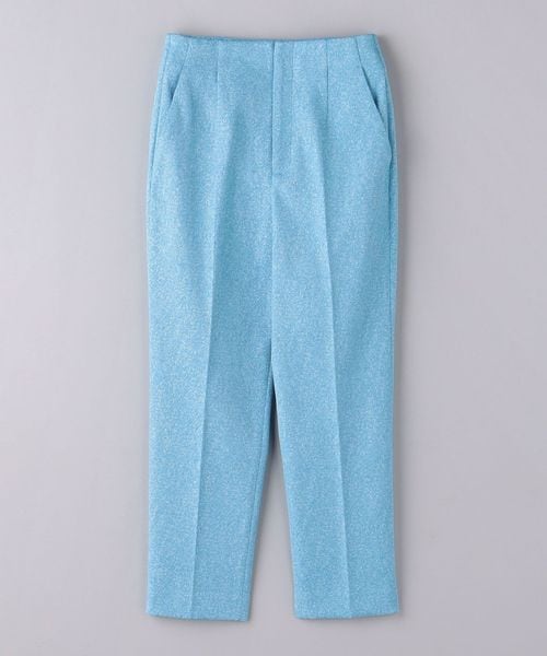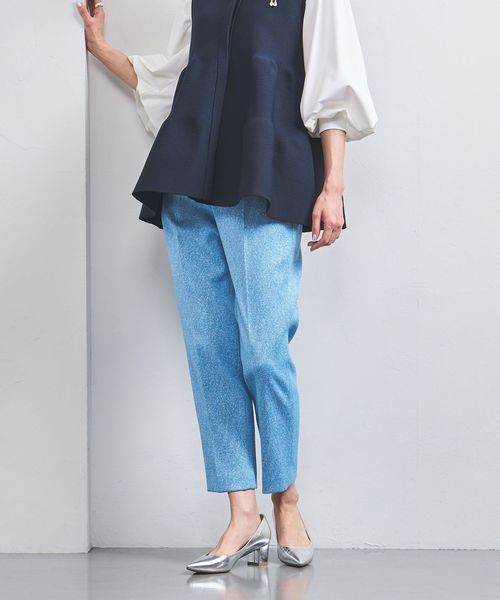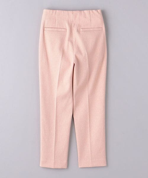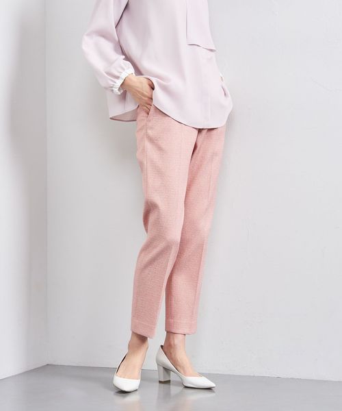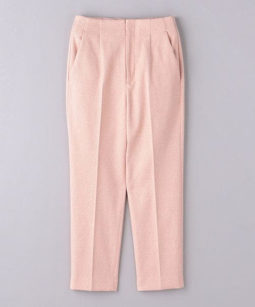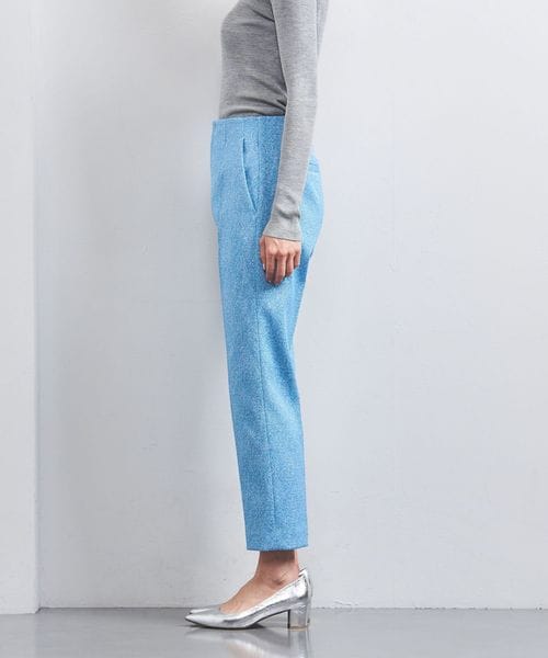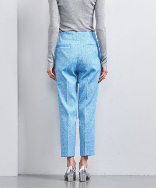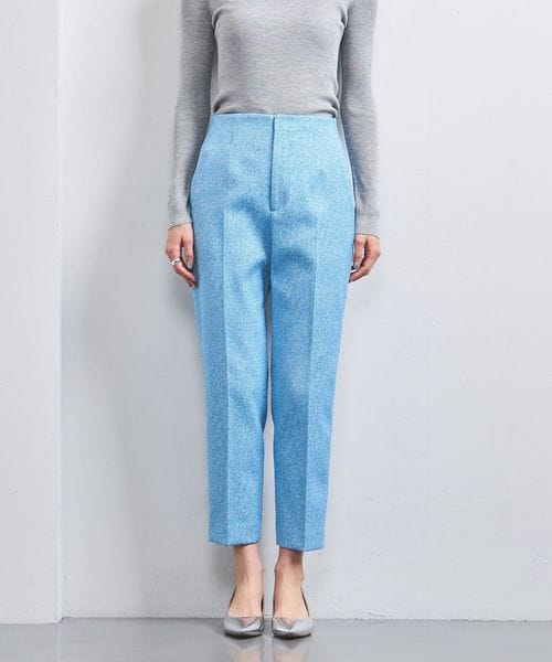 ベルトレスのややハイウエストで裾に向けて細身になるテーパードシルエット。