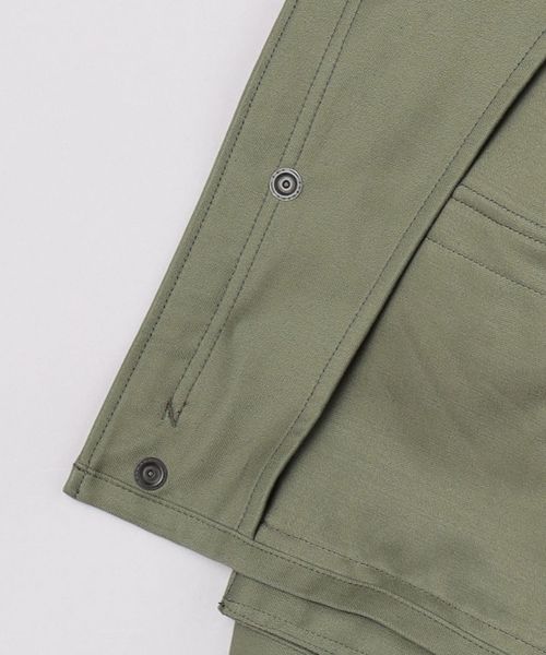 ジップとスナップボタンが見えないすっきりとしたフロントデザインが、ポケットのディテールをより引き立たせています。