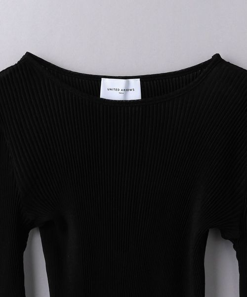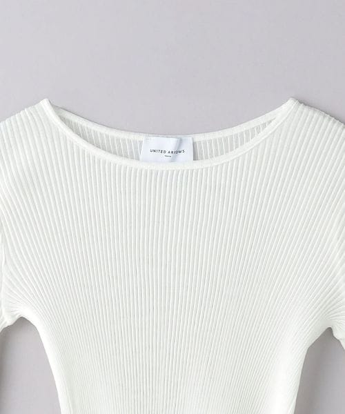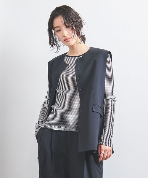 細くトリミングした襟ぐりはデコルテを華奢に演出します。