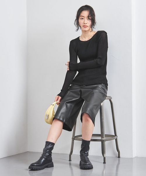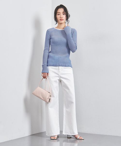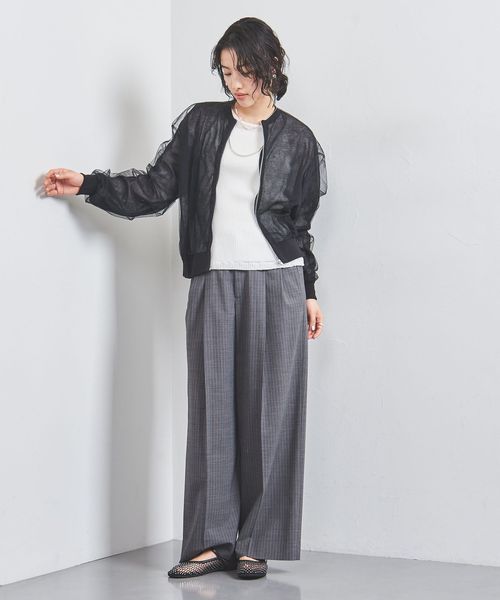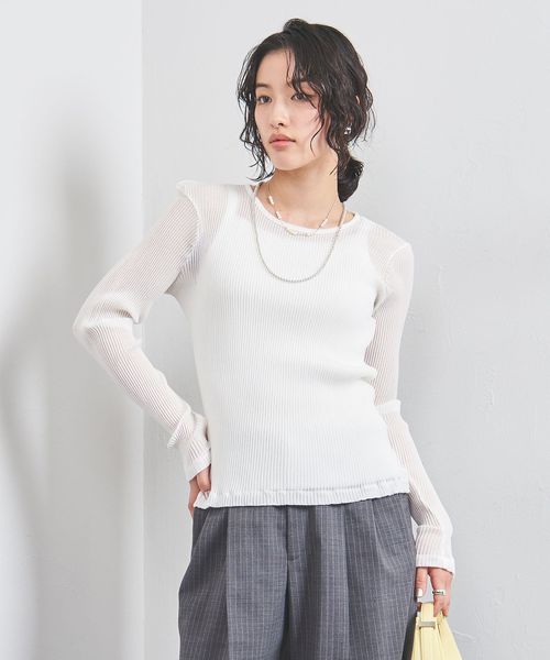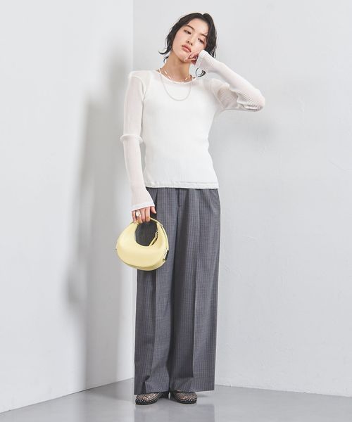 インナーにキャミソールやタンクトップをレイヤードして透け感をお楽しみください。