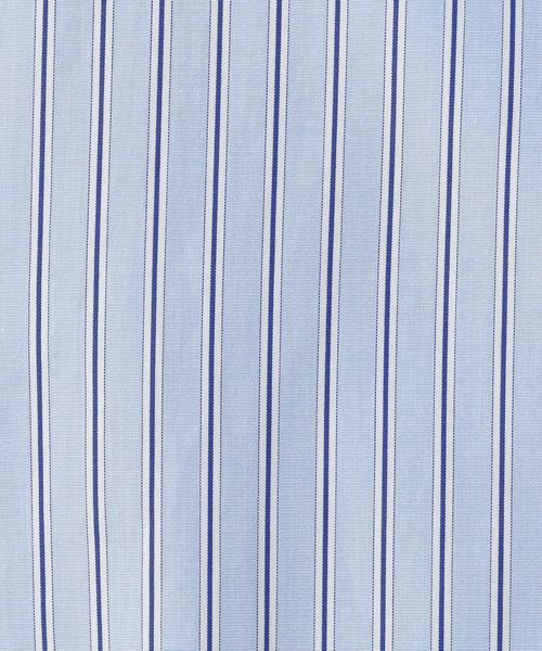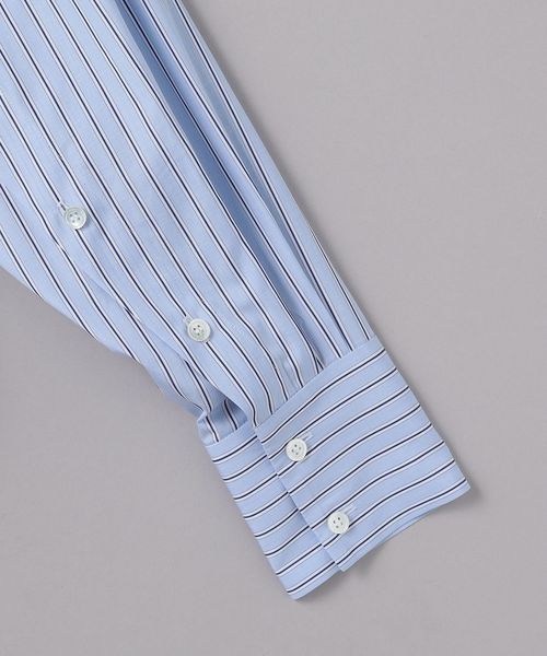 肩のラインが落ちたゆったりとしたシルエットと袖のボタン開きディテールが、シーズンムードを感じさせるストライプシャツ。