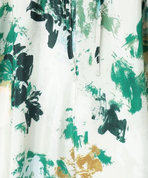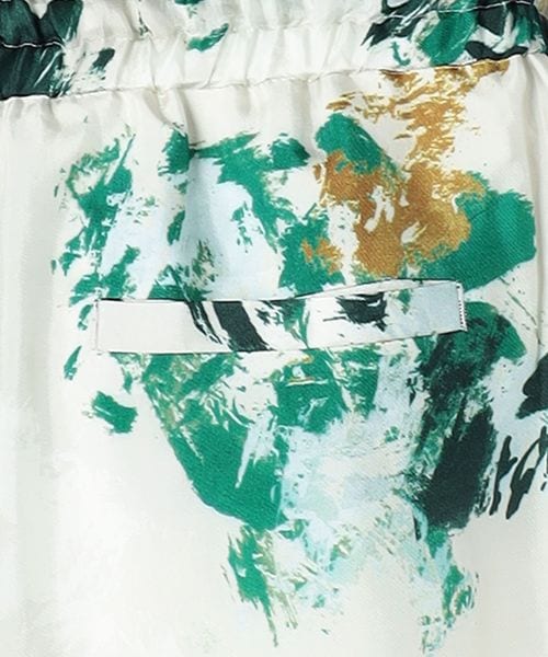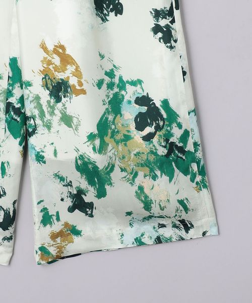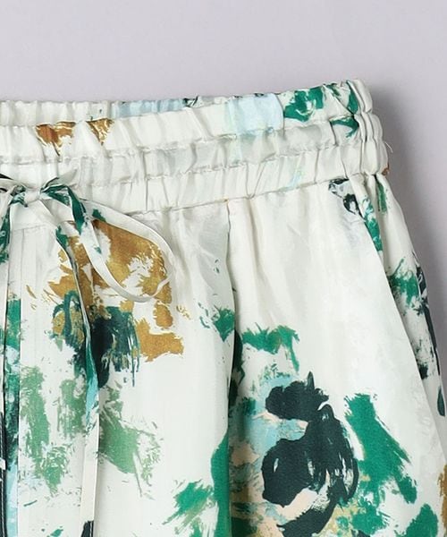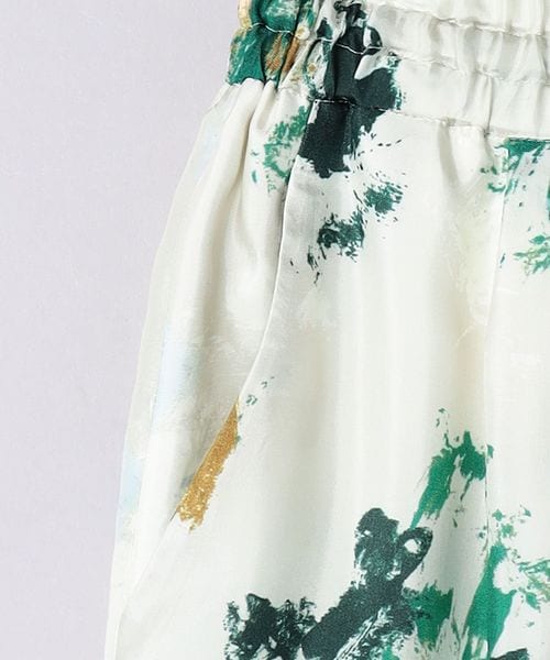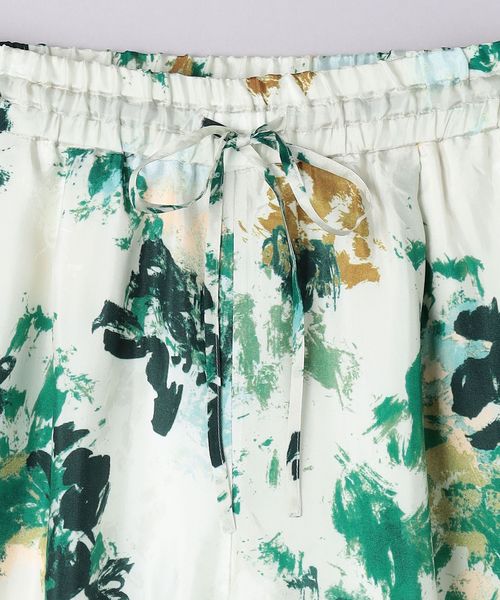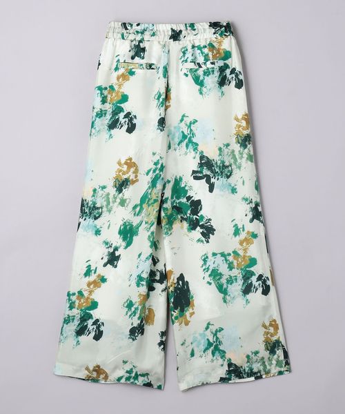 水彩画のような抽象的なフラワープリント柄が印象的なイージーパンツ。