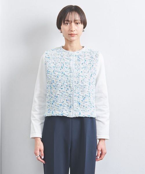 ・その他1カラーはフロントがホワイトベースにブルー×ライトグリーン×イエロー×シルバーメインのミックスツイードで袖・後身頃はホワイト。