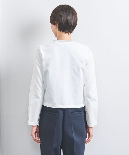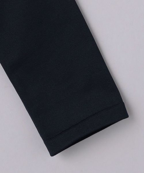 袖と後身頃は型崩れしにくいポリエステル素材の天竺編地で軽やかさをプラスしました。