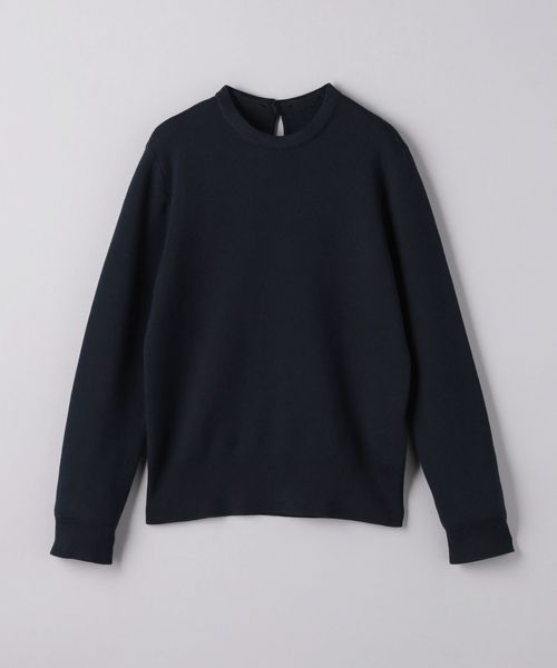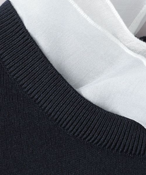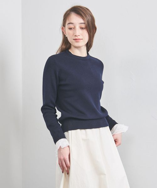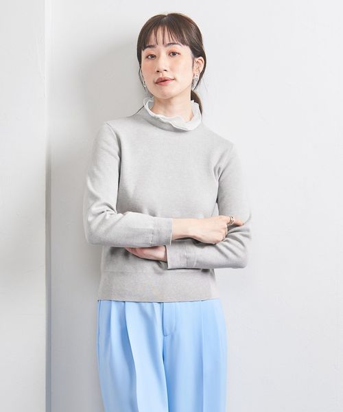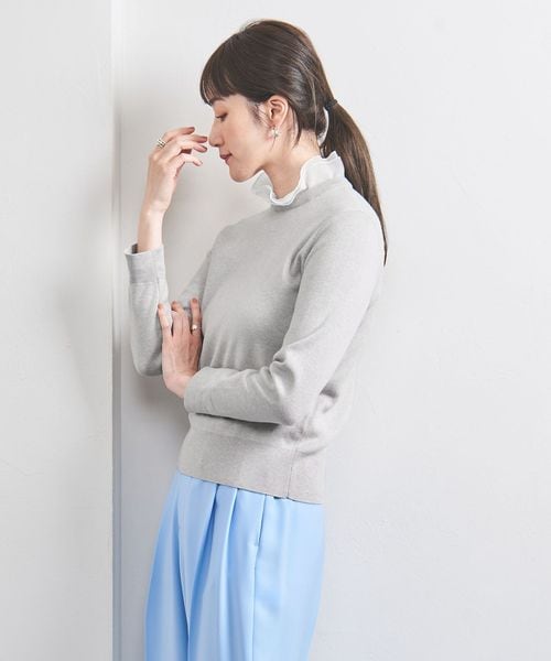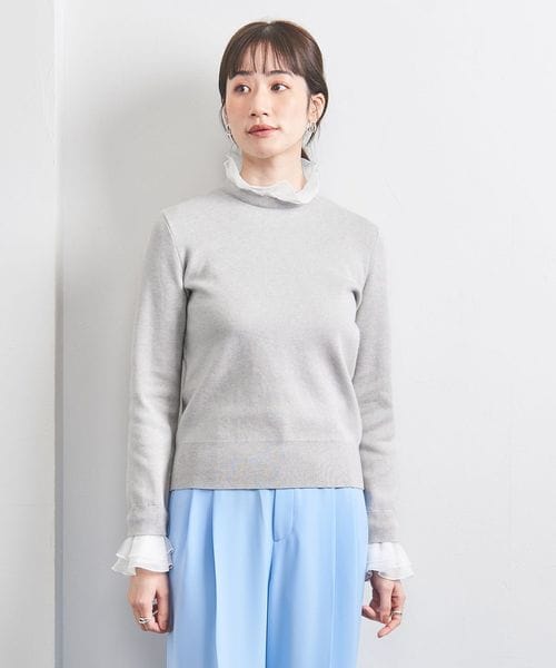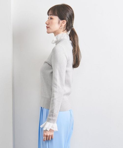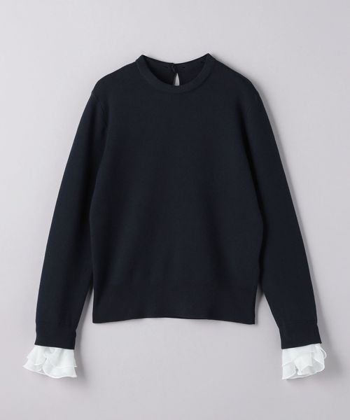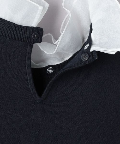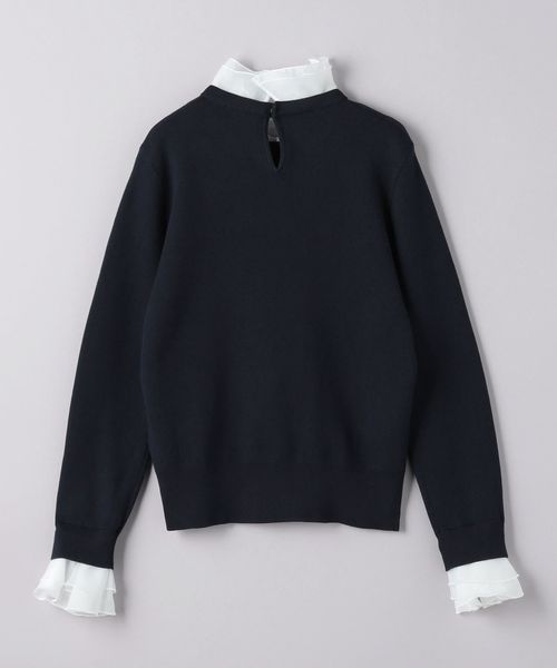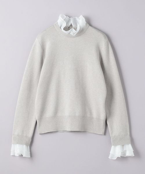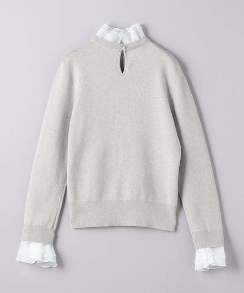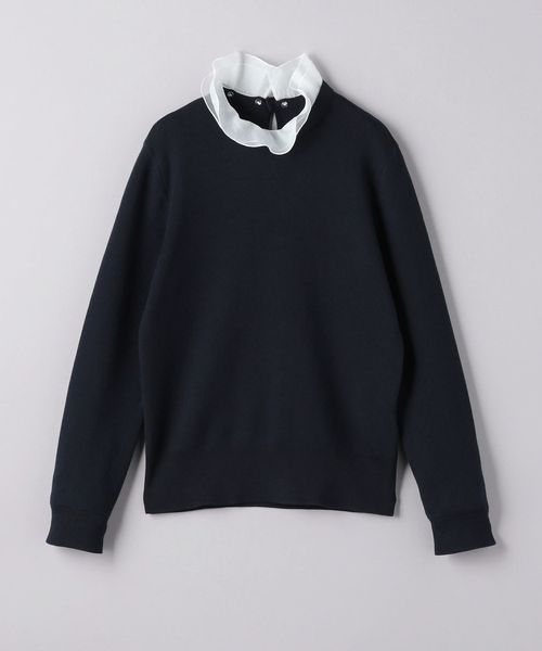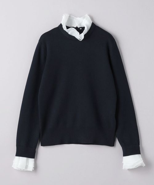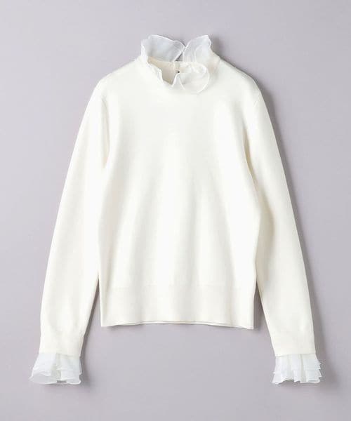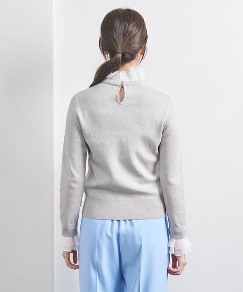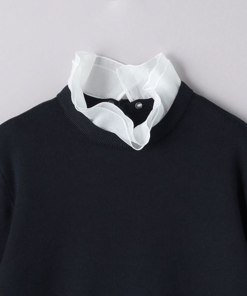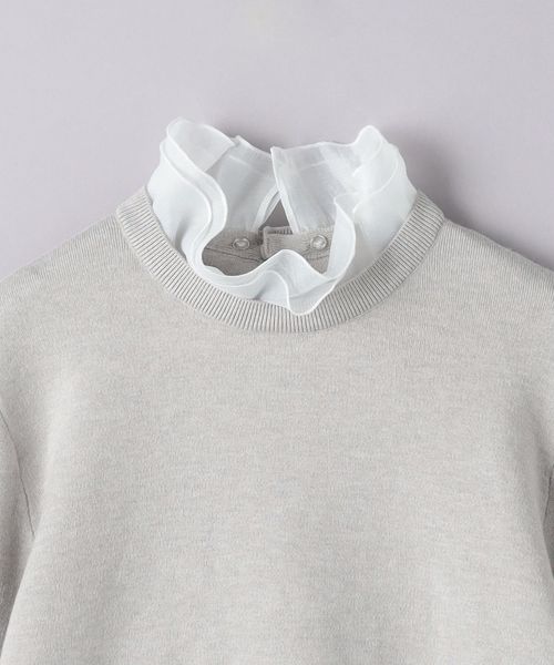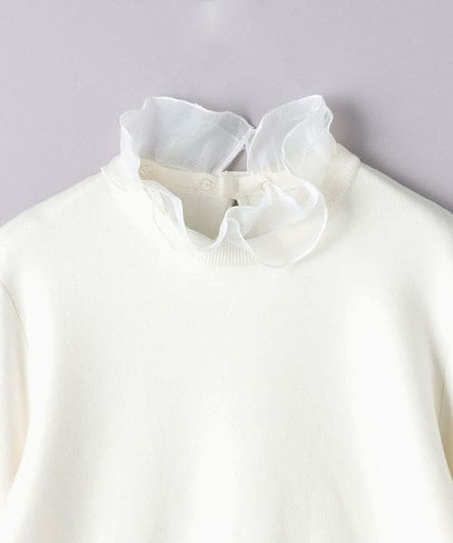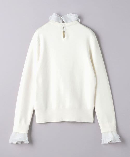 襟と袖口のシアー感のあるラッフルフリルが取り外し可能なプルオーバーニット。