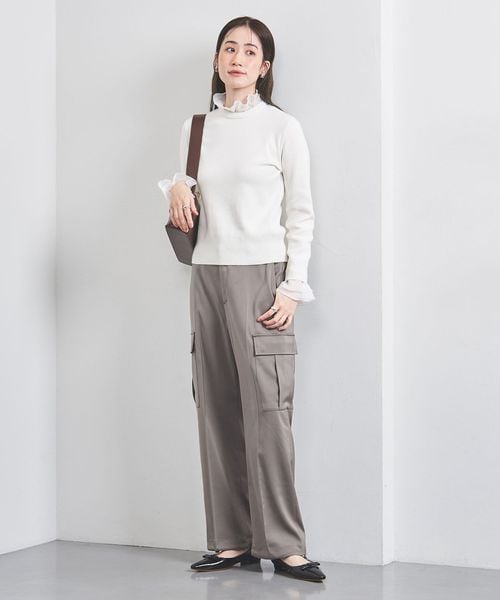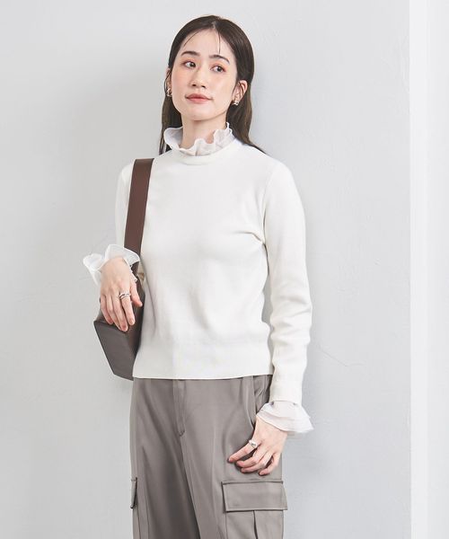 オーガンジーのラッフルフリルの襟元が目を引く4WAYニット