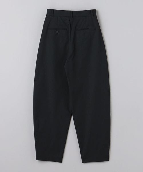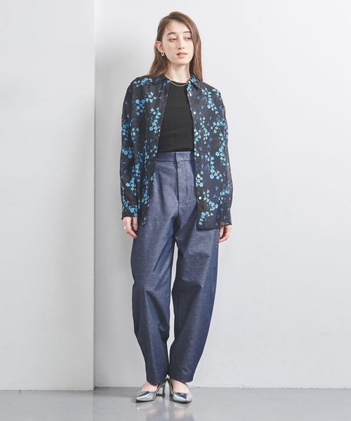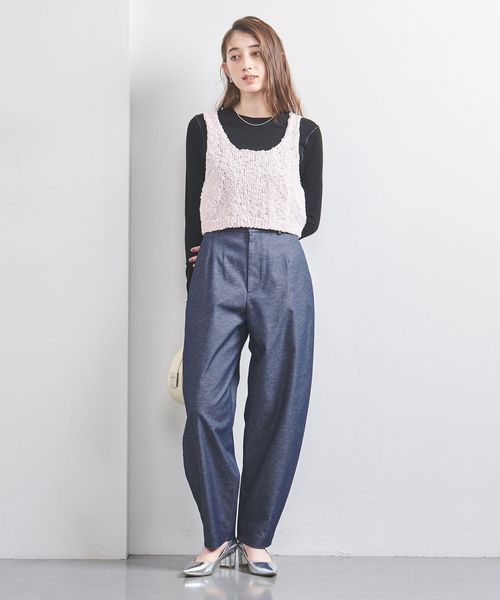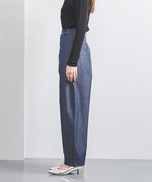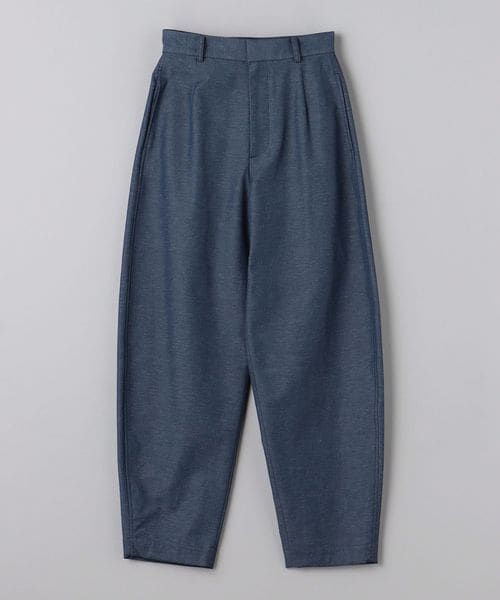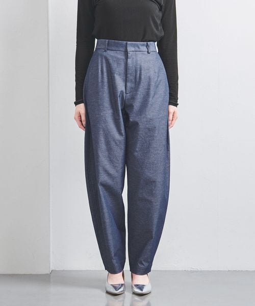 デニムライクなカジュアルな素材感で大人らしいバレルシルエットのパンツ。