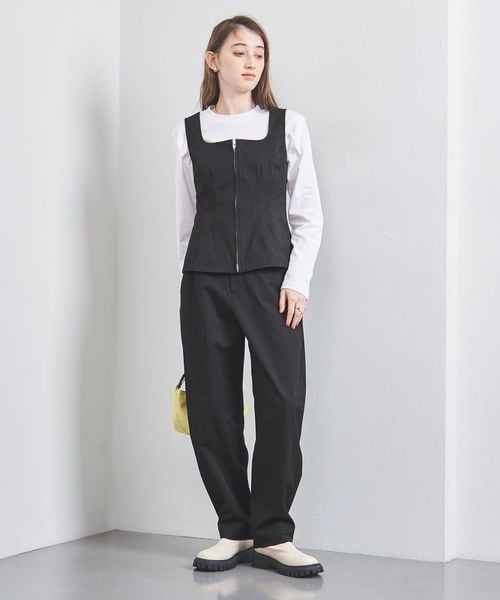 ボリュームのあるシルエットなのでリブニットなどのコンパクトなトップスと好相性。