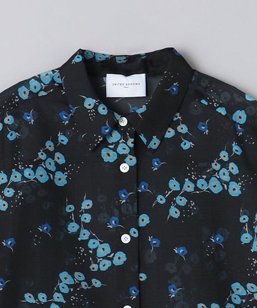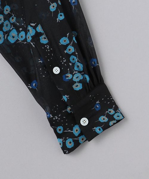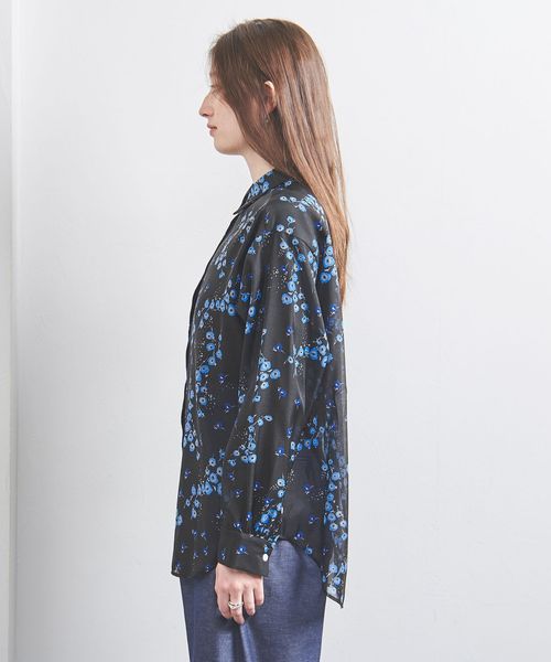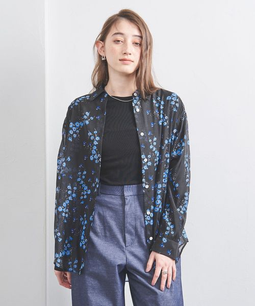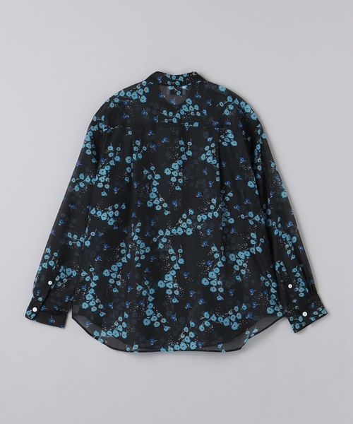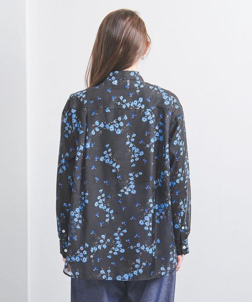 タテ糸に細番手、ヨコ糸にスパンのポリエステルを使用し、エアリーなハリ感を出したオーガンジーベースのユナイテッドアローズ別注プリント。