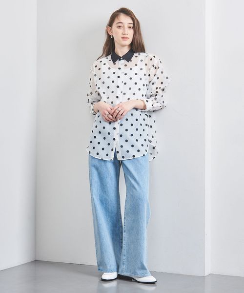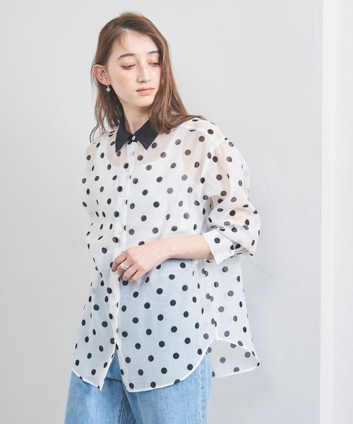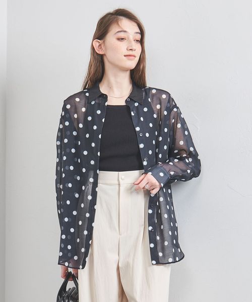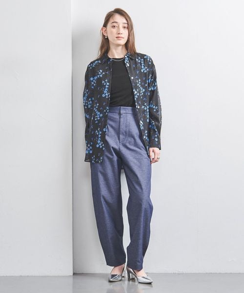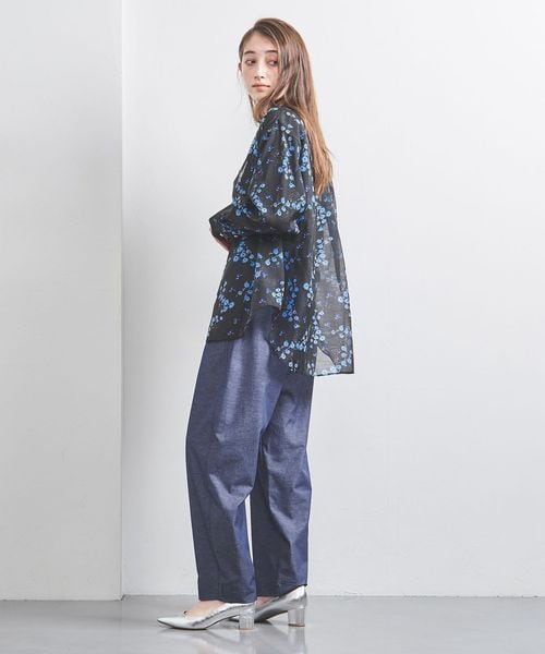 インナーや肌をほのかに透かす生地が、カジュアルな柄にエレガントな雰囲気をプラスしています。