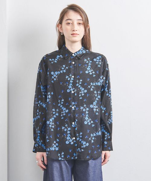 大胆なドットとフラワープリントが目を惹くオーバーシャツ。
