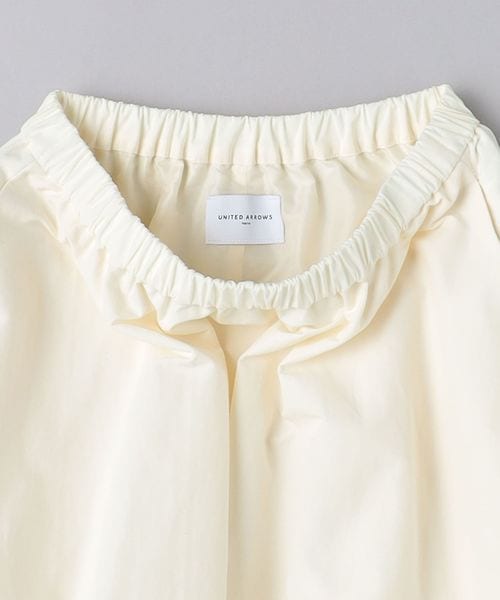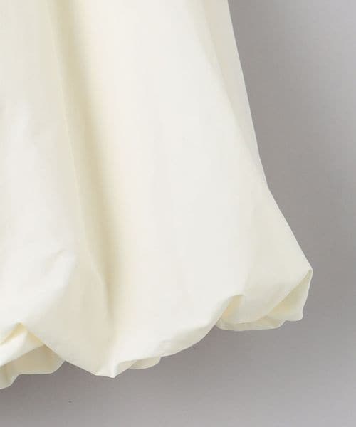 素材の程よいカジュアルさとバルーンのエレガントさが相まった一着。