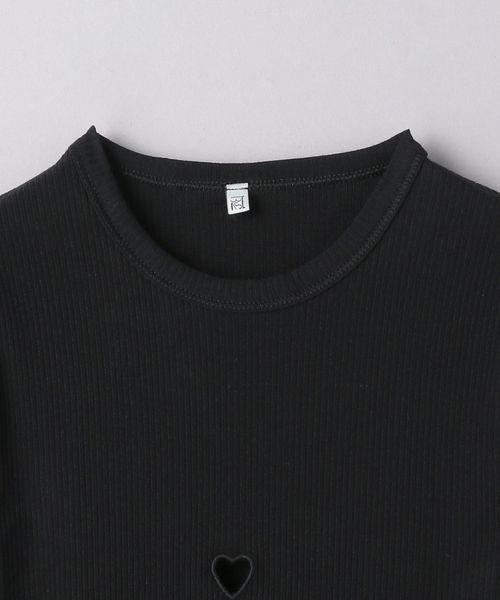 フロントにハートがくり抜かれたTシャツ。