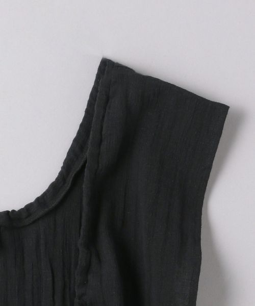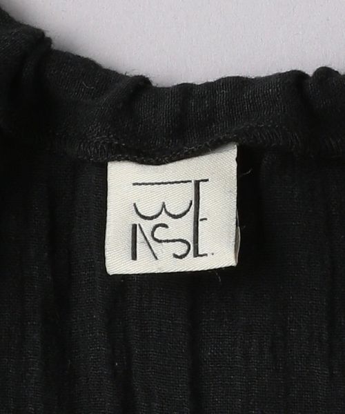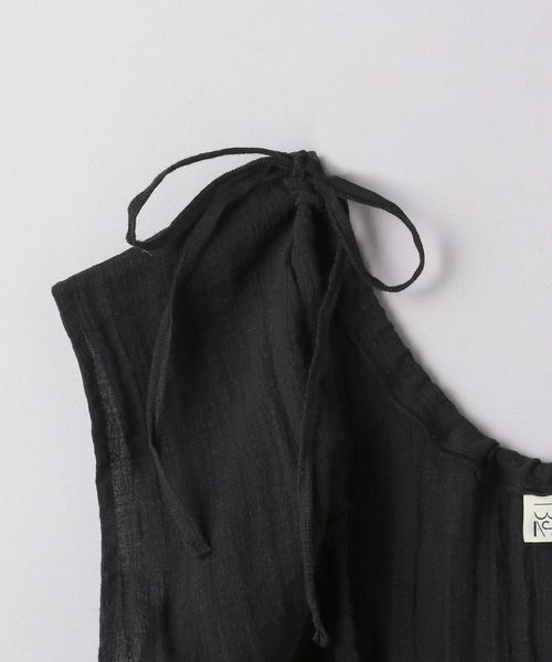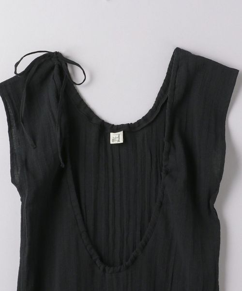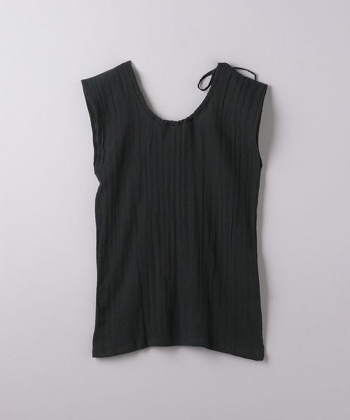 襟周りのギャザーを調整し、首周りの開きを調整できるシンプルなトップスです。