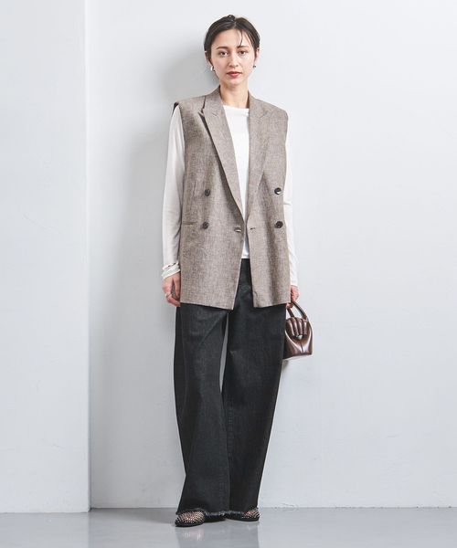 同シリーズのシャツとのセットアップ合わせや、ニットに足元はヒールでエレガントにも仕上がります。