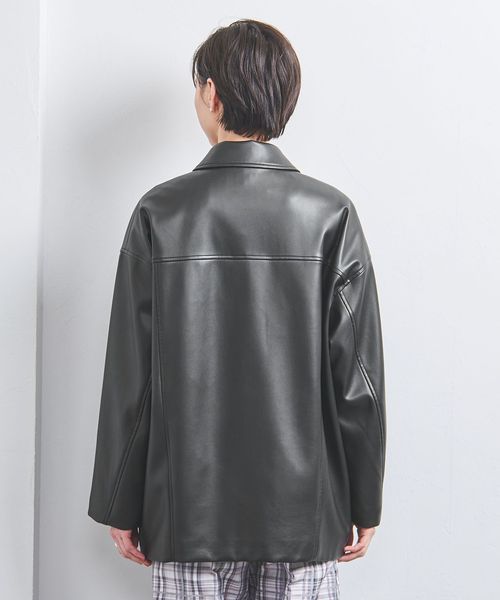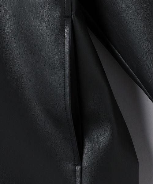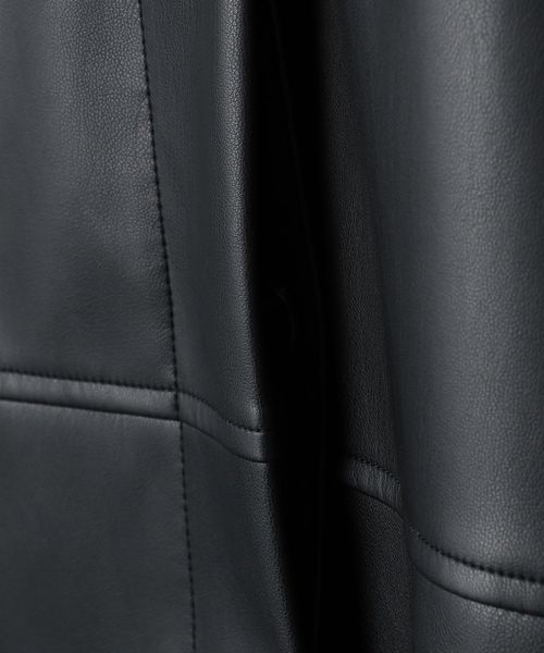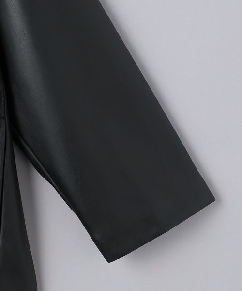 レザーライクな素材でエレガントにもカジュアルにも着こなせるミドル丈のコート。