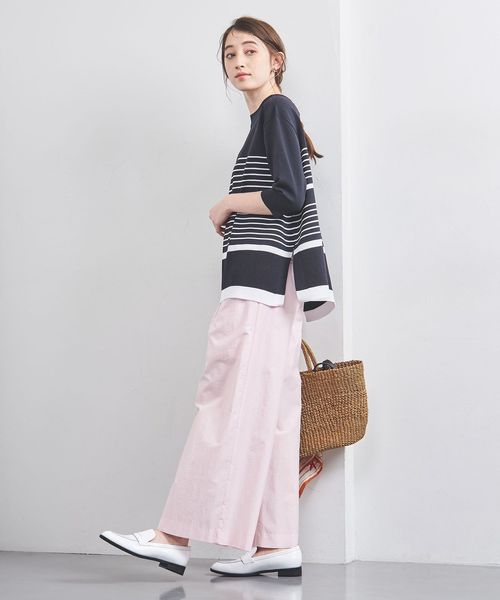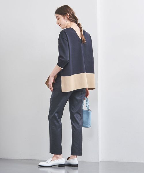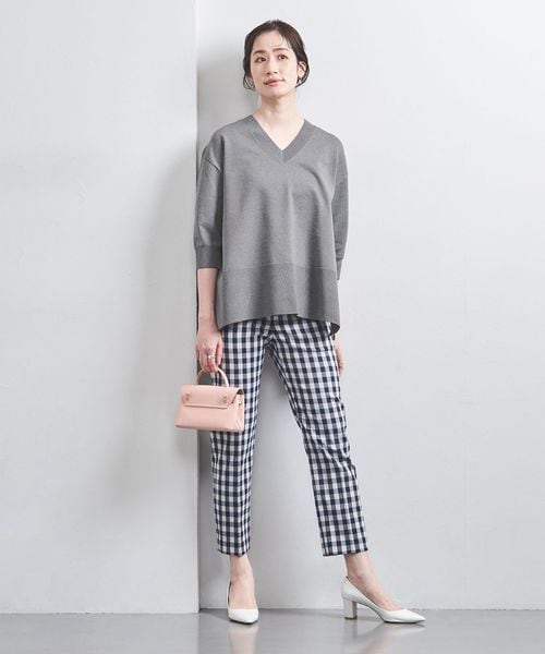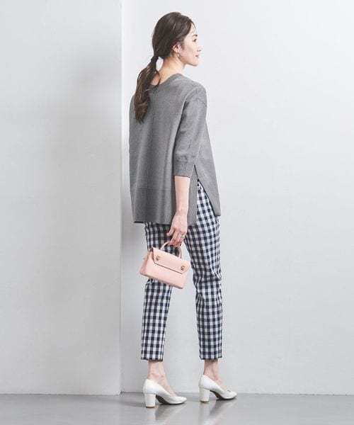 すっきりとしたシルエットのテーパードパンツやストレートパンツ、Iラインのスカートなどと好相性です。