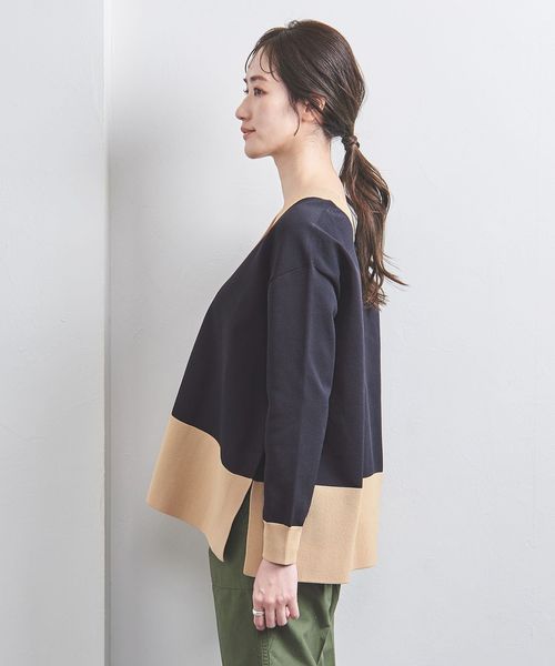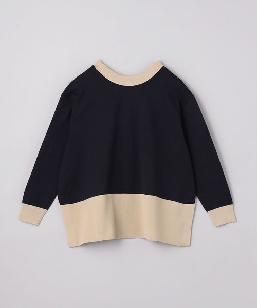 Vネックを前にしてカーディガンとしても、後ろボタンあきのラウンドネックプルオーバーとしても着用できる2WAYデザイン。