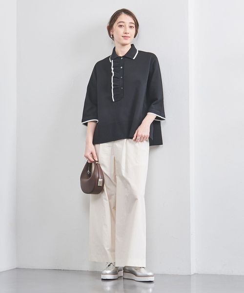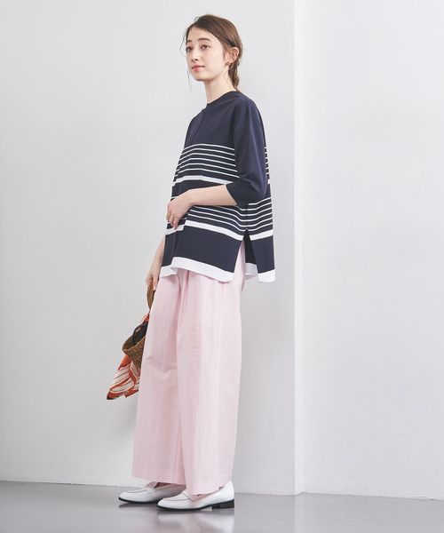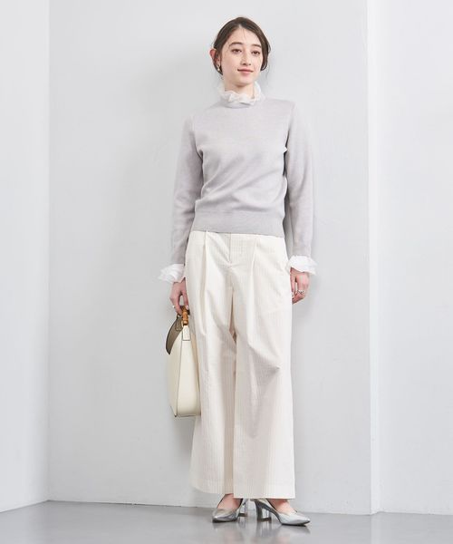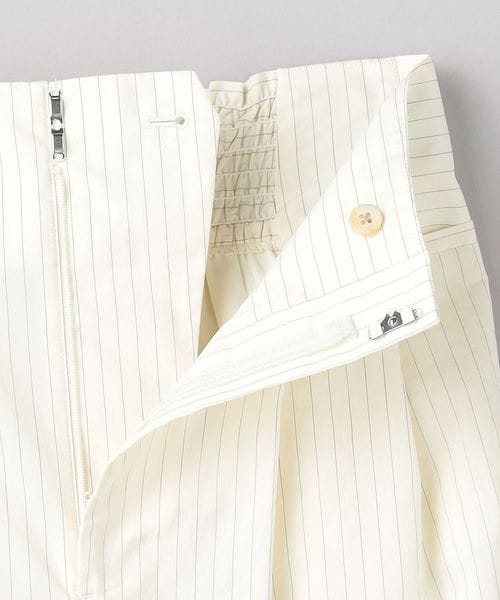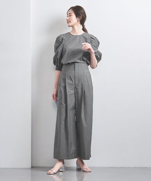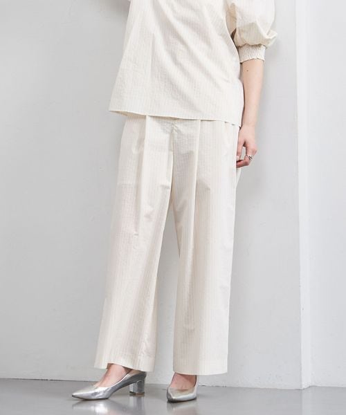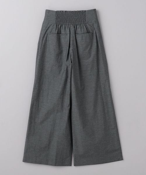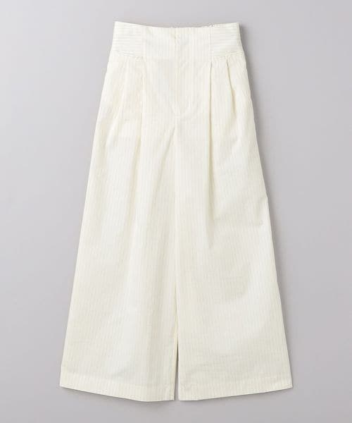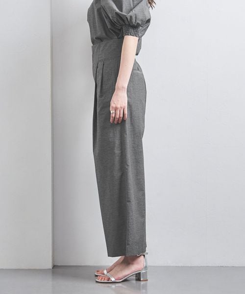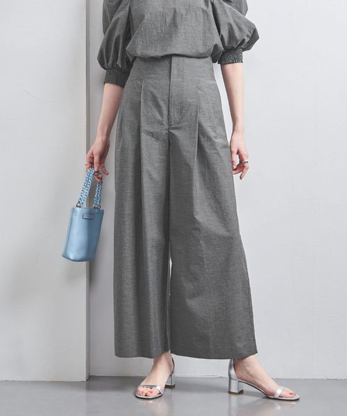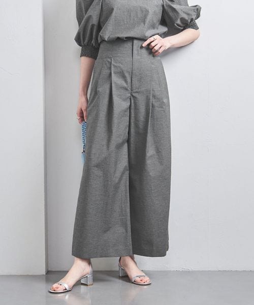 美脚見えするハイウエスト設定の2タックワイドパンツ。