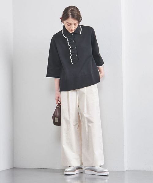 ニットなどをタックアウトしワイドシルエットと相まったリラックスコーデも素敵です。