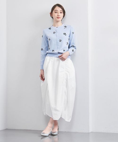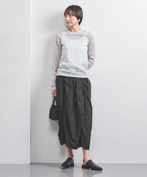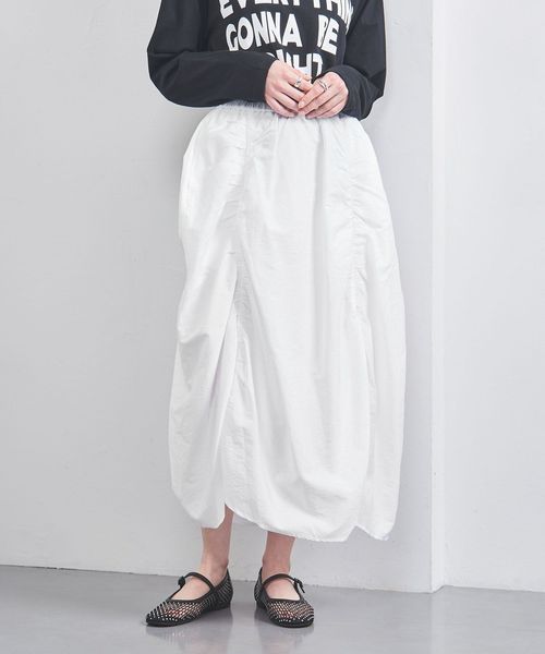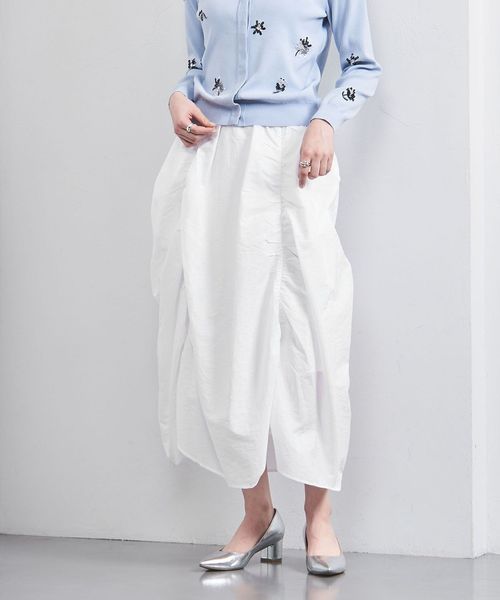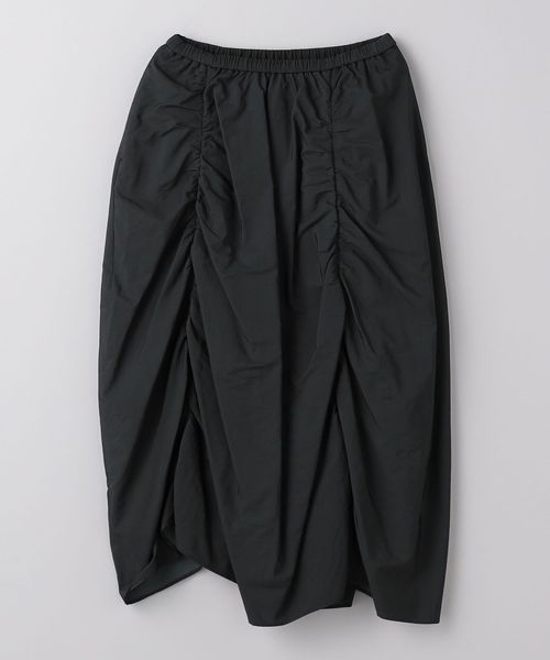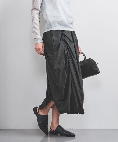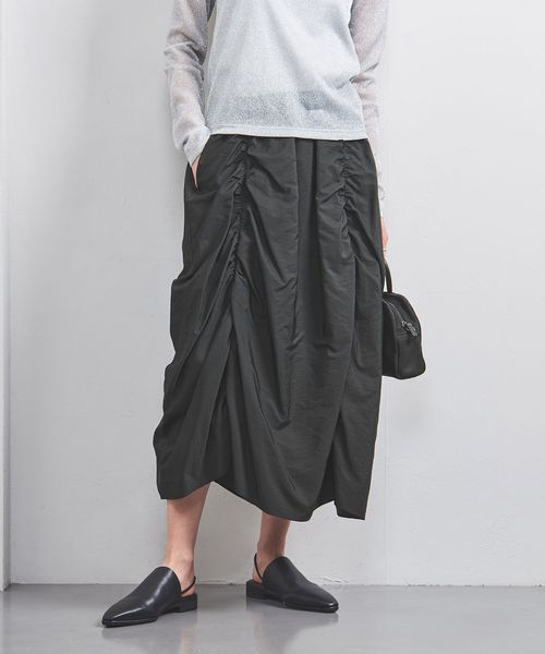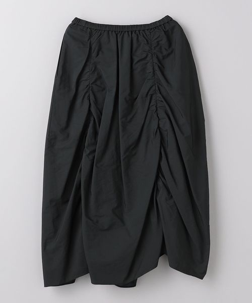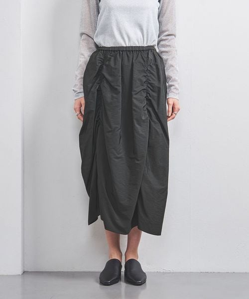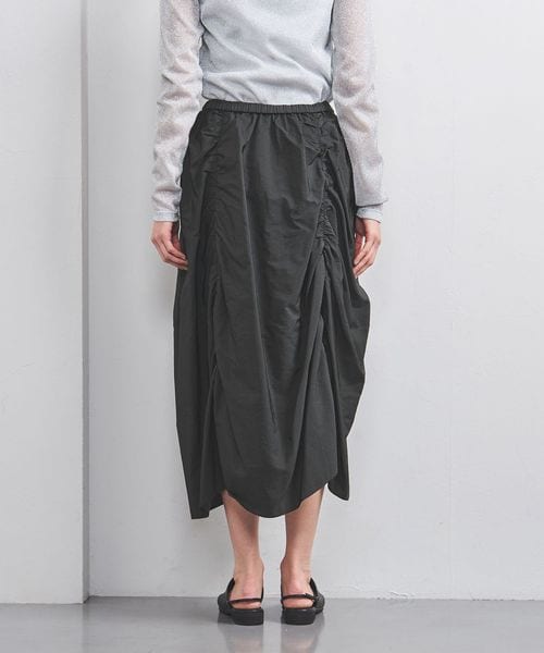 甘過ぎないシルエットとシャーリングデザインが新鮮なスカート。