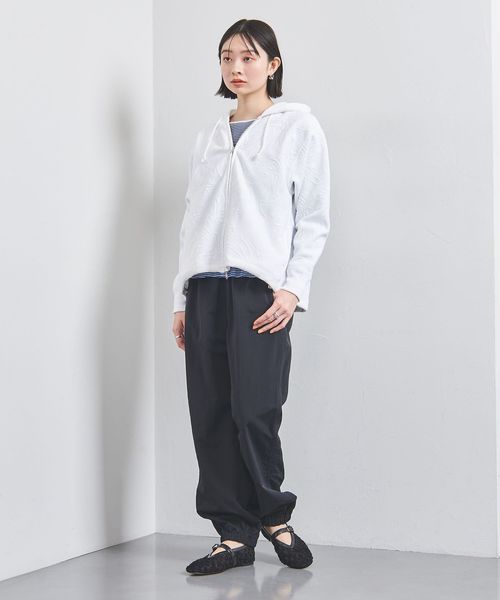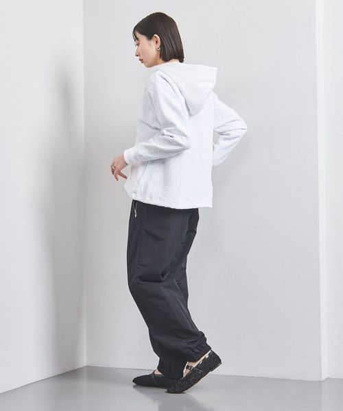 裾はドローストリング仕様で、絞って丸みのあるシルエットにしたり、ダブルジップの開け具合を調整したりと着方のアレンジをお楽しみいただけます。