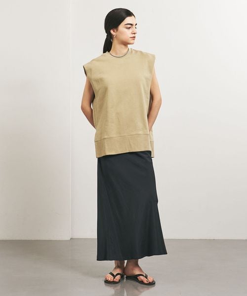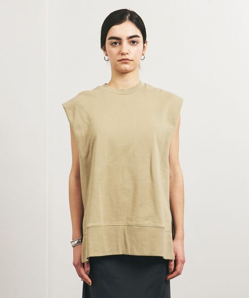 ゆるりと着られるリラックスシルエットの裏毛ノースリーブトップス