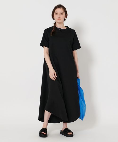 ゆとりのあるフレアシルエットがリラックスして着用できるTシャツワンピース