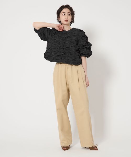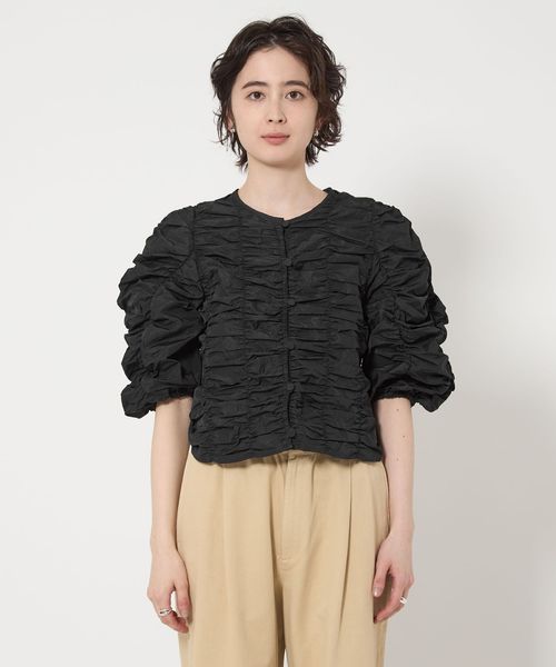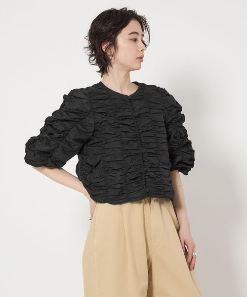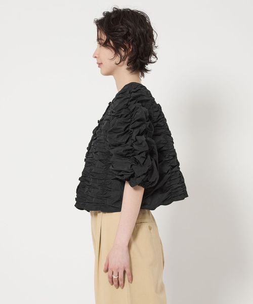 シャーリングの立体感がドラマチックな主役級トップス