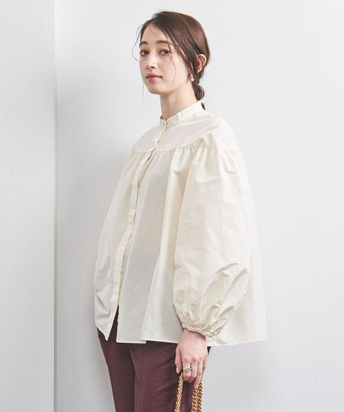 袖口には平ゴムを入れ、袖をプッシュアップした着こなしでふんわりとしたシルエットがより際立ちます。