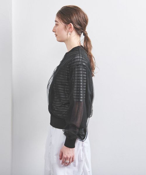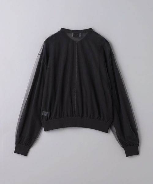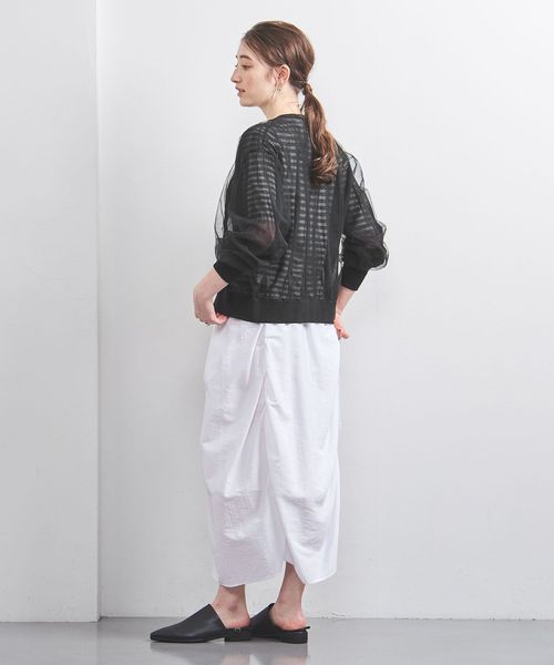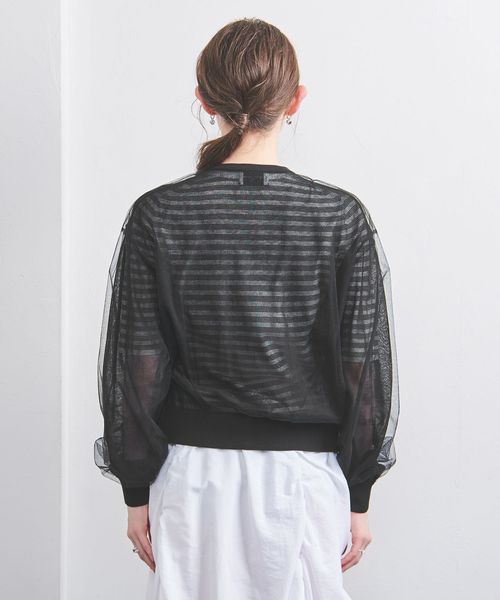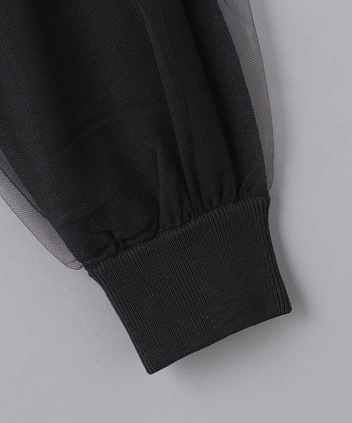 ハイゲージで軽やかなニットの上に、柔らかい質感のチュールを重ねています。