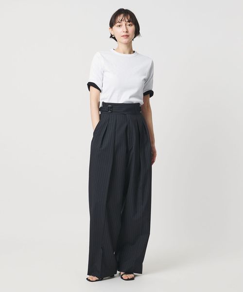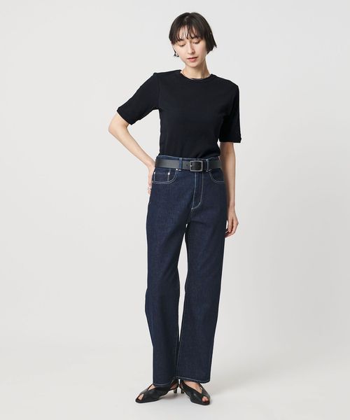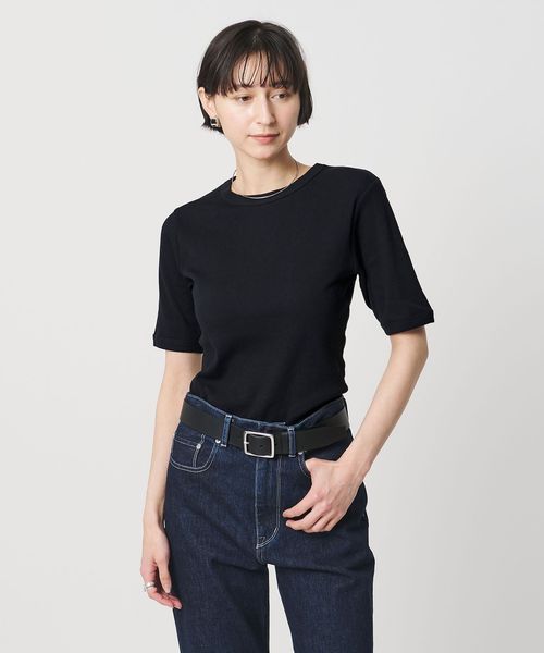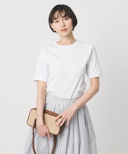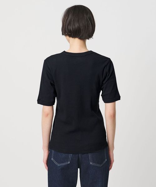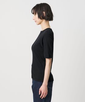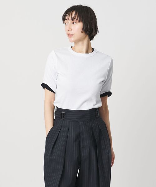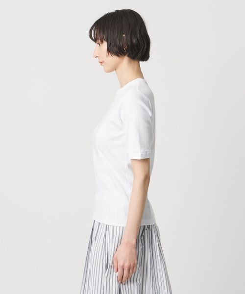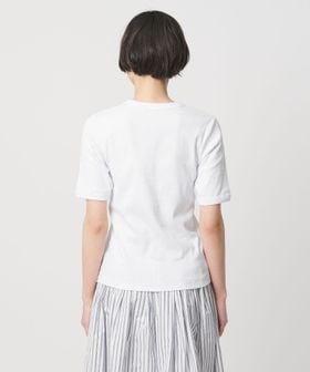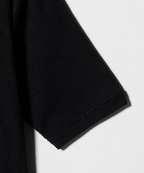 首回りのフィット感やインでもアウトでも着用しやすい着丈、袖をやや長めのショートスリーブにしてカジュアル感を抑えた別注デザイン。
