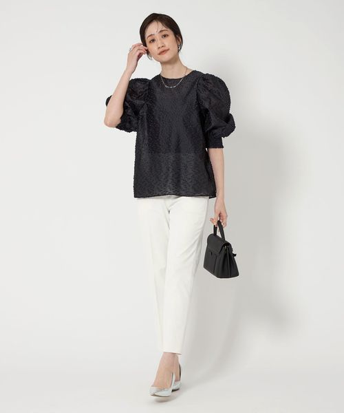 足首がのぞくやや短めのレングスに設定し、春夏シーズンらしく軽やかな印象です。